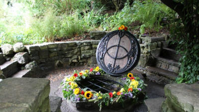 gardens of Chalice Well of the Red Spring. The interior consists of